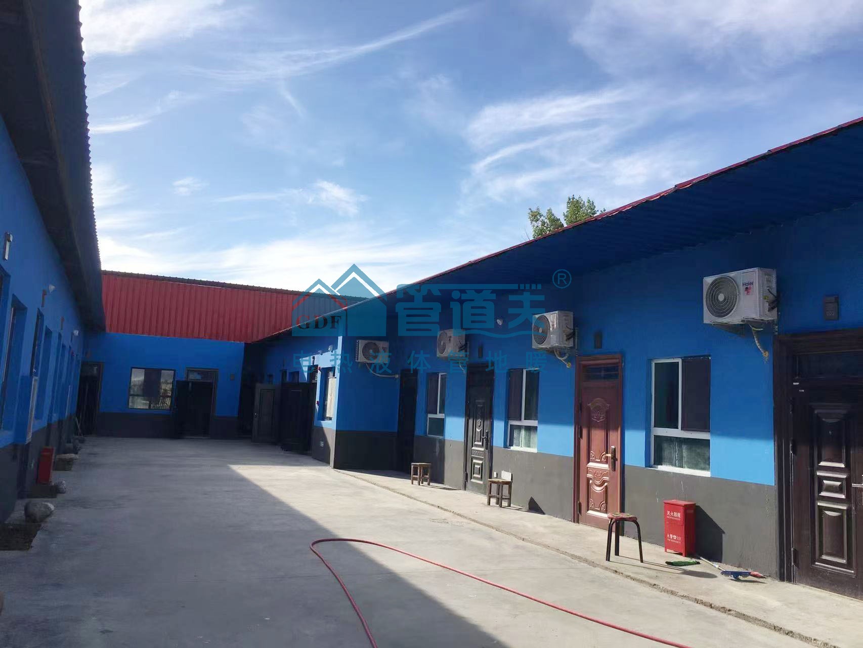 企事业单位、民宿无法进行集中供暖,为了省心,减少维护,选择大面积电加热液体管地暖新管铺装